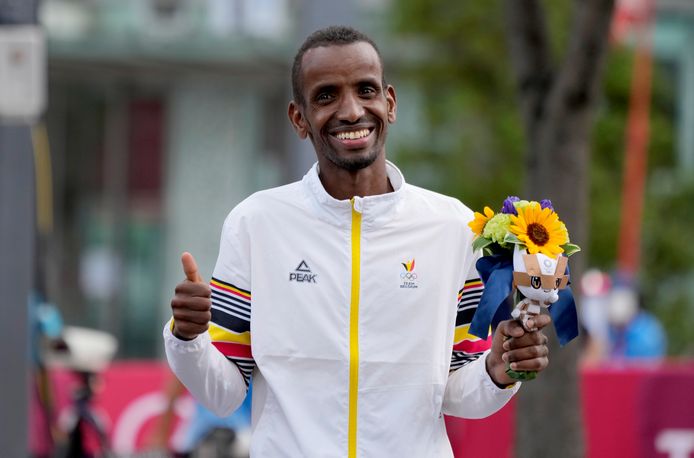 Bashir abdi a reçu sa médaille lors de la cérémonie de clôture des jeux olympiques. Bashir abdi a remporté la médaille de bronze du marathon messieurs des jeux olympiques de tokyo dimanche. Les informations sur la carrière et le palmarès de l'athlète bashir abdi. Le gantois a terminé en troisième . (belga) court portrait de bashir abdi, vainqueur de la médaille de bronze du marathon messieurs aux jeux olympiques de tokyo dimanche: